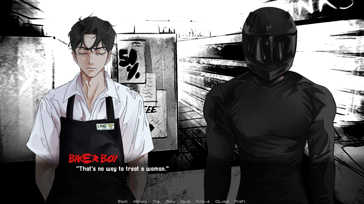 The game is sooo good, but I kinda want Lane becomes love interests too- just saying! ik it's mostly about biker guy and Lane might die in the next shift (HOPEFULLY NOT), keep going with your work! I'm patiently waiting for the update eheheheh