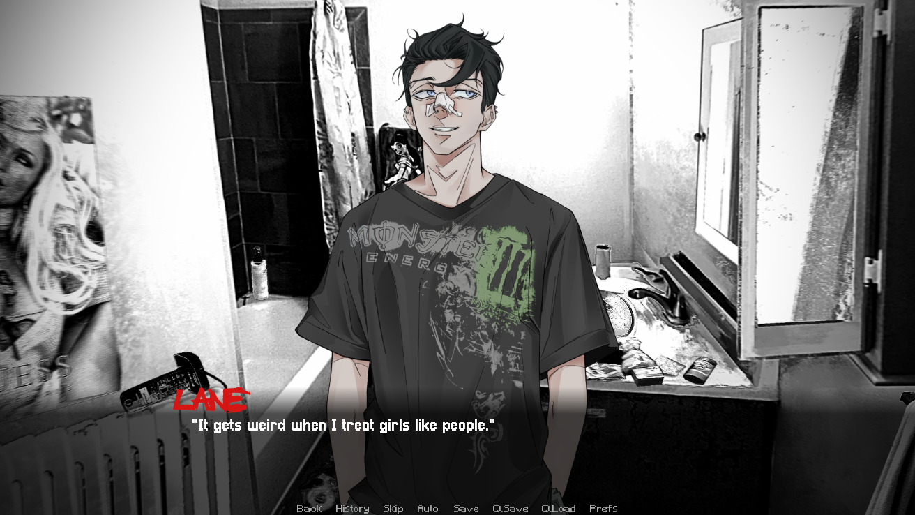 i think about this game everyday. holy shit. the level of detail and effort put into this visual novel is INSAAAAANEEEE and somehow SOMEHOW i keep finding more details??? the more i play / look through the itch.io page (especially after the page was updated with the new pics from shift 3) speaking of which I AM SO SO SOOOOOO EXCITED FOR SHIFT 3 !!!!!!!! i get giddy seeing updates on the dev's tumblr blog, i am floored in awe at just how much time and thought was put into this passion project!!! the art is GORGEOUSSS, the characters are all so charming and intriguing (BB is adorable in his good route but in the other routes he is.....scary; and with lane, he's that crass worker that i disliked while playing BB's route but then i played his route and? somehow? i? BEGAN TO LOVE HIM??? HUH??? HOW??? the writing in this game is just, WOW. genuinely incredible. this whole VN is a work of art and i feel like we're so lucky to have this VN available to us for free. thank you laly for everything that you're doing for this project and sharing your talent with us!!! :D